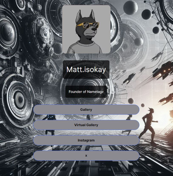 With Nametagz, your chosen name functions seamlessly as a domain, wallet address, person-to-person messenger, and much more—all accessible in a standard web2 browser. Join Nametagz today to embrace decentralization, connectivity, and innovation in the digital world. Stay tuned for upcoming features like virtual exhibitions and customizable links pages.